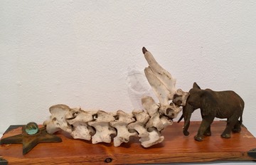 14x5 sheep spine, modified elephant and brick wall stabilizer star cat’s eye marble on repurposed wooden base