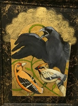 18x23 collage underpainting with acrylic glazes, pencil, charcoal and pastel on wood with repurposed frame