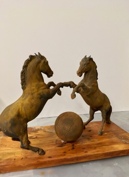 14x13 vintagemodified horses, vintage softball found on a walk with my Newfie, repurposed wood base