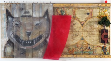 12x24 old fencing, gas station signage, ephemera, found objects/SOLD