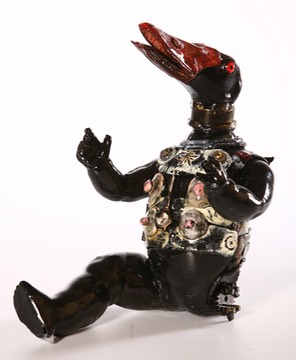 9 inches tall, taxidermy head, epoxy clay, found objects, old doll parts