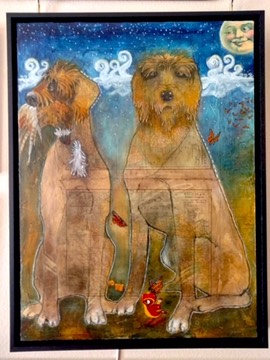 These two are called Pudel Pointers they are Gracie and Burleigh, two beloved pets. The folks who commissioned me wanted there dogs in my whimsical style not a realistic style because they said they already had a million photographs. Look up the breed they are interesting.