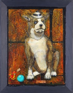 25X30 collage underpainting with vintage paper, acrylic glazes, pencil and pastel on wood with repurposed frame
