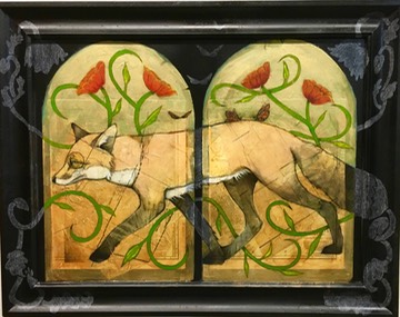 23x29 collage underpainting with acrylic glazes, pencil, charcoal and pastel on wood with repurposed frame