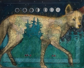 11x14 collage underpainting with acrylic glazes, pencil, charcoal and pastel on wood with repurposed frame