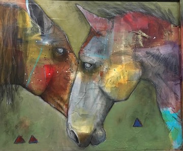 25x30 abstract underpainting with acrylic glazes, oil, pencil, charcoal and pastel on wood with repurposed frame